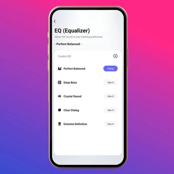 Select the sound equalization you like best. You can choose from the available presets: Deep Bass, Crystal Sound, Clear Dialog, or Extreme Definition.