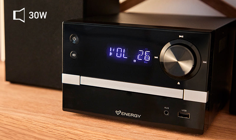 The Home Speaker 7 is a 30W stereo sound system designed to take your home listening experience to a professional level. Equipped with a CD player compatible with MP3 and WMA formats, it allows you to enjoy your classic collections with exceptional quality. Its versatile modular structure offers the freedom to place each speaker separately for a greater surround sound effect to fill any room. Additionally, it features Bluetooth connectivity for wireless streaming, a USB MP3 port, a 3.5mm jack input, and FM radio with 50 presets to stay tuned to your favorite stations. The entire system is easily managed via the included remote control, combining power, style, and total connectivity in one compact device.