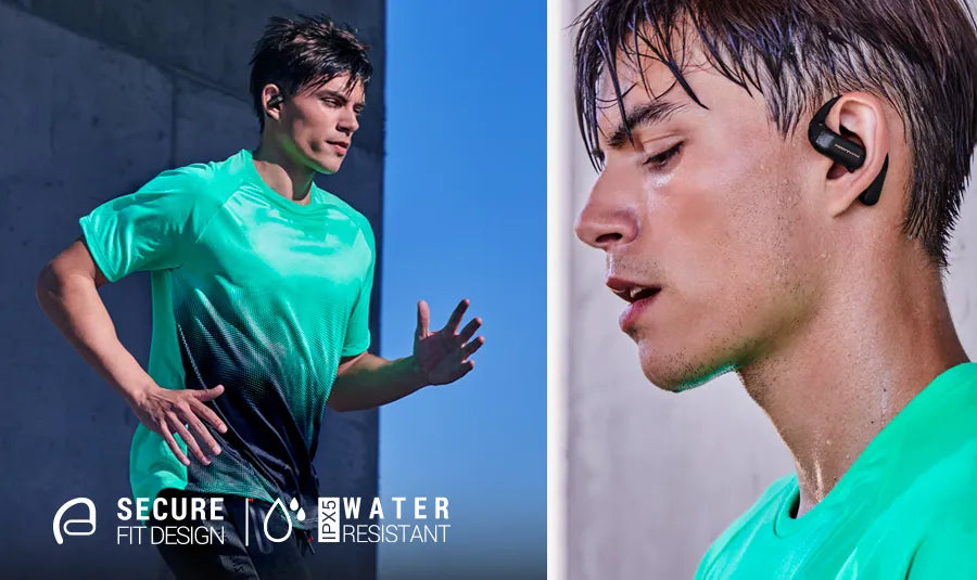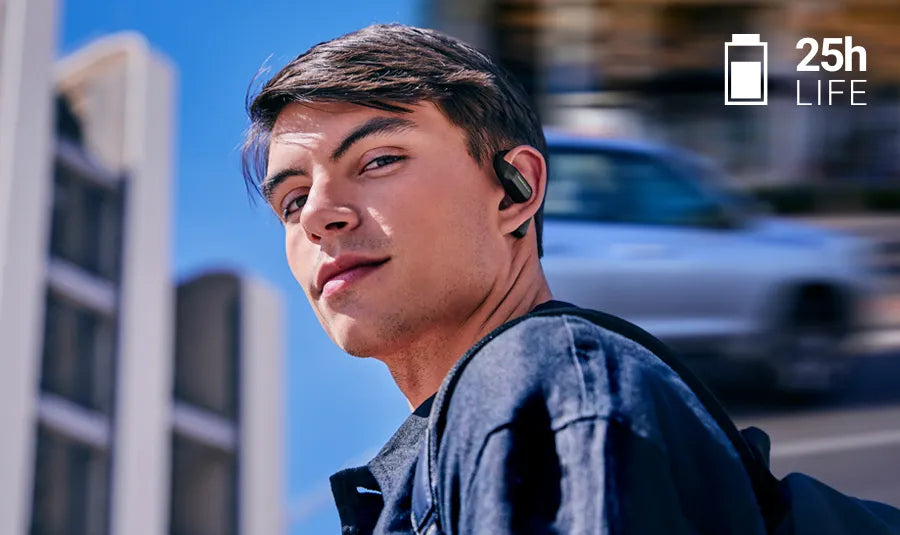 Earphones with Open Sound technology for an immersive sound experience that won't isolate you from the world around you. With Bluetooth 5.4 and True Wireless Stereo, play your music wirelessly thanks to their 25 hours of autonomy. Water-resistant, with Secure Fit+ system to ensure a snug fit. Elevate your musical experience.