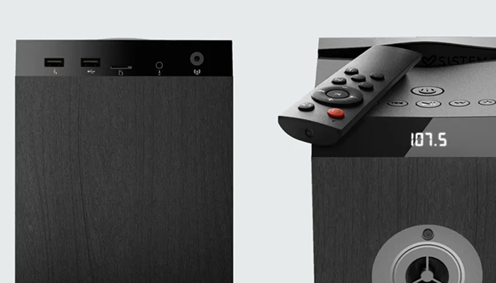 Enjoy music on this 2.1. sound system. Pair your Bluetooth devices easily. 100 W output power and TWS connection for powerful sound. It also features an FM radio, a USB port and a microSD card player to play music anytime.