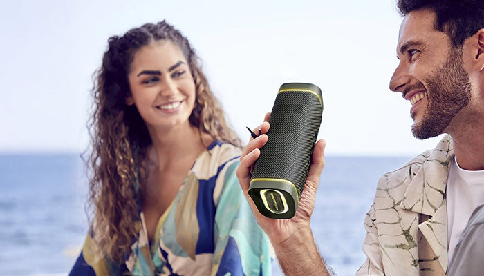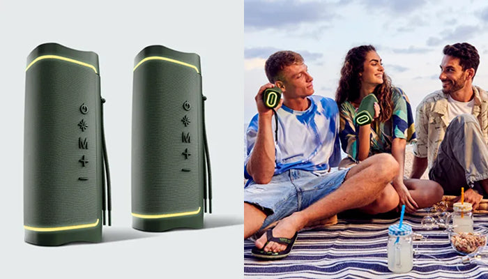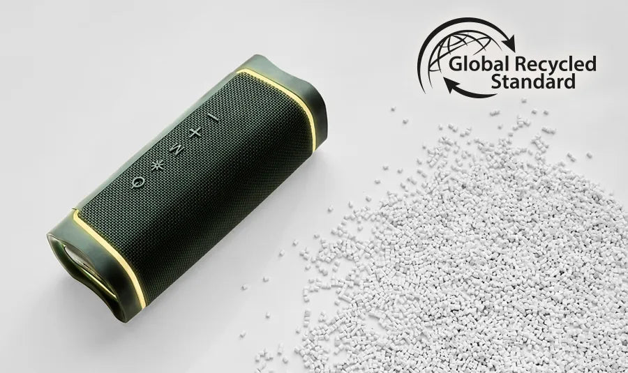100% recycled plastic and 12 h battery life. Enjoy music everywhere!
